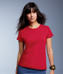 preshrunk 100% ring-spun cotton • 5.4-oz. • 24 singles • missy contoured silhouette with side seams • seamed collar • shoulder-to-shoulder taping • double-needle neck • sleeves and bottom hem • tear-away label • Sizes: S-2XL