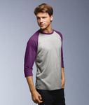 preshrunk 50% polyester/25% combed ring-spun cotton/25% rayon • 4.7 oz. • 30 singles • semi-fitted with side seams • contrast set-in collar and 3/4-length raglan sleeves • single-needle topstitched back neck • double-needle sleeve and bottom hems • tear-away label • Sizes: XS-2XL