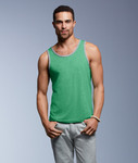 preshrunk 100% ring-spun cotton (blended ring-spun cotton/polyester in heather colors) • 4.5-oz. • 30 singles • tubular construction • bound-on self-fabric trim on neck and armholes • double-needle bottom hem • tear-away label • heather grey cotton/poly blend is 90/10, all other heather colors are 60/40 • Sizes: S-2XL