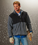 100% polyester Therma® no-pill fleece shell • 8.6 oz. • water-resistant 100% nylon taslan across shoulders and front chest • left chest and back yoke interior Lining Saver Systems™ • full-zip front • black nylon cuffs and waistband trim • adjustable waistband with cord locks • zippered pocket on right chest • zippered slash pockets • Sizes: S-3XL