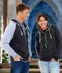 55% cotton/39% polyester/6% rayon • 7.5 oz. • contrast 1/2-zip placket with metal zipper • open-bottom with extended back length and contrast stitching • Sizes: S-2XL