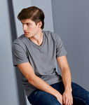 preshrunk 100% ring-spun cotton jersey knit • 4.5 oz. • 30 singles • contemporary fit • shoulder-to-shoulder taping • narrower ribbed collar without cover-seaming • mitered v-neck • double-needle sleeve and bottom hems • tagless • Sizes: S-3XL