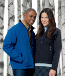 92% polyester/8% spandex bonded to 100% polyester • 9.1 oz. • 4-way stretch fabric for ease of movement • 3-layer construction • water and wind-resistant • feminine fit • bungee cord with toggles at bottom hem • zippered front pockets • zippered iPocket® • left and right inside embroidery pockets with concealed zippers • bungee zipper pulls • Sizes: S-3XL