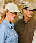 70% cotton/30% nylon • UV protective (UPF 45+) and water/stain-repellant coating • four panel • low-profile • extra long visor for sun protection • mesh side panels and screen metal eyelets for extra breathability • flexible nylon webbing outside self-adhesive closure •