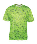 100% sublimated polyester • 3.5 oz. • moisture management/antimicrobial performance fabric • self-fabric collar • sport shoulder panels for maximum movement • double-needle bottom hem • heat seal logo on left sleeve • Sizes: XS-XL