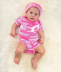 100% combed ringspun cotton print 1x1 baby rib • 5.3-oz. • 2% of all Code V sales are donated to Children of Fallen Soldiers Relief Fund, Inc. and Fisher House™ • flatlock seams • double-needle ribbed binding on neck, shoulders, sleeves and leg opening • Reinforced three snap closure • bleed-resistant ink is recommended when printing our camouflage products • Sizes: newborn; 6; 12; or 18 months