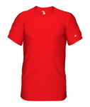 92% polyester/8% spandex moisture management/anti microbial performance fabric • 4.4 oz. • Self-fabric collar • Double-needle hem with tack • Badger heat seal logo on left sleeve • Sizes: XS-4XL