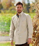 55% combed cotton/45% polyester • 4.2 oz. • ripstop texture • easy-care • wrinkle-resistant • stain- and soil-repellent • triple-needle stitching • chambray trim inside collar • back yoke and cuffs • 2 button-through patch pockets on chest • pencil division on left chest pocket • double-needle side seams • Sizes: S-3XL